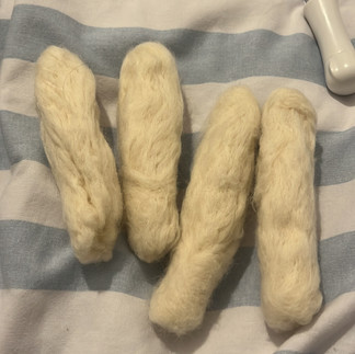 I started out creating the eggs for this piece. In the end I made 11 eggs and then started creating the pancakes and toppings. I'm really happy with how this turned out and my favourite is definitely the pancakes as they feel the most realistic. One problem I came across was that the sausages were too big for the plates so after making 12 of them I had to cut them down and re-felt them to shape which was quite difficult. In the end, I wasn't happy with how they were turning out so I focused on making 3 detailed ones and changed my design from the original sketch to one with different kinds of breakfast meals.